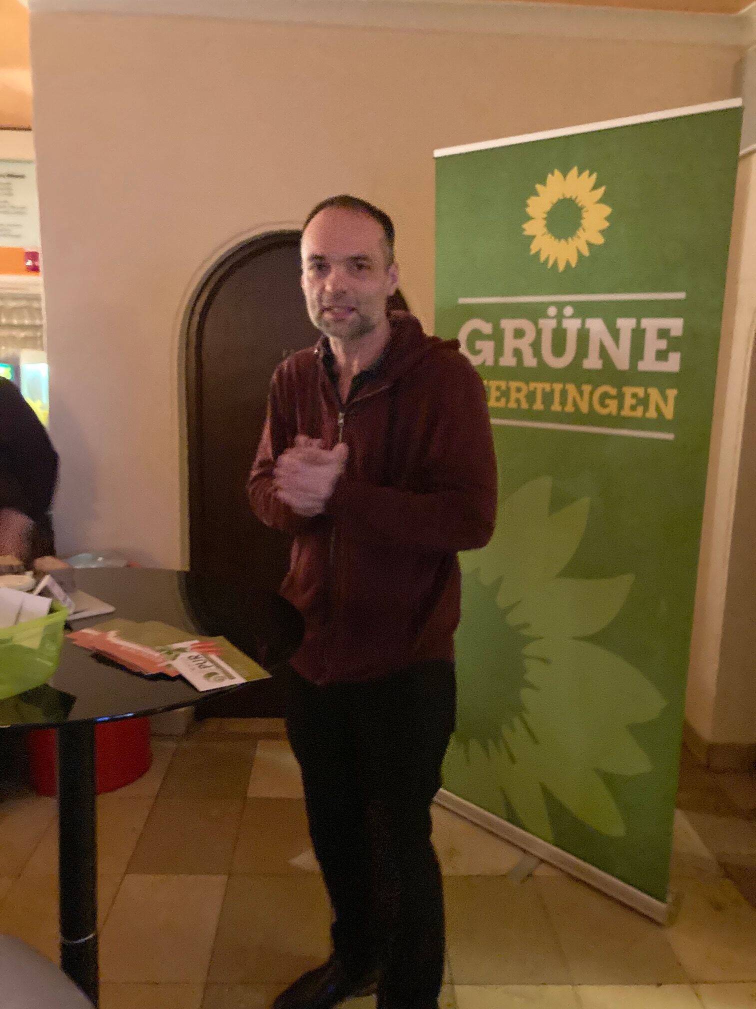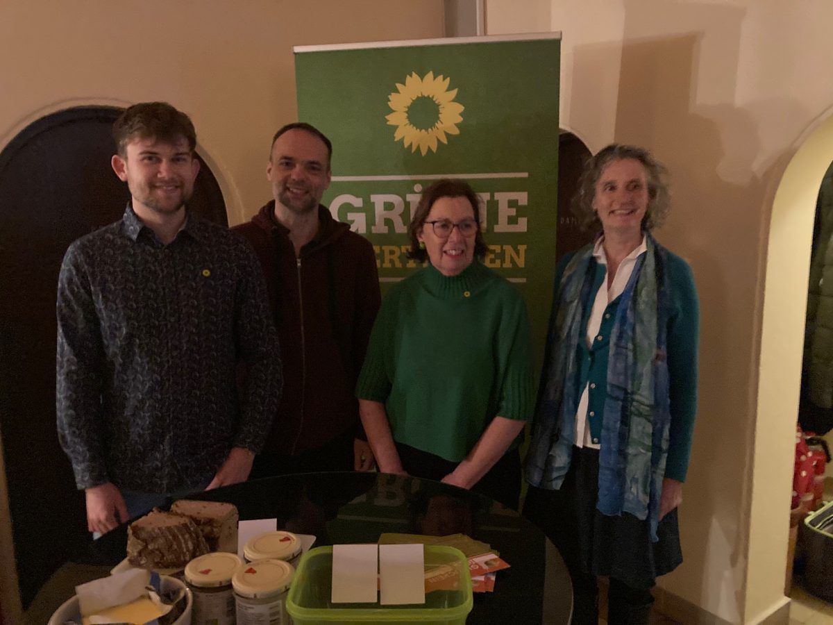 Dank und aufmunternde Worte richtet auch Constantin Jahn an die Frauen im Foyer. Der Direktkandidat der Grünen für den Landtag im Stimmkreis Dillingen/Augsburg Land stellt sich kurz vor und erklärt: „Es ist auch Aufgabe und Verantwortung der Männer, sich für Feminismus stark zu machen und für Geschlechtergerechtigkeit einzusetzen“. Dann überlässt Jahn die Bühne an diesem Abend gerne den Frauen.