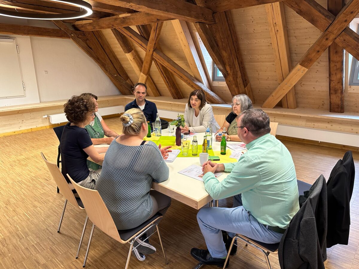 Erster Termin war der Pflegestützpunkt in Höchstädt – eine Einrichtung, die es erst seit zwei Jahren gibt und die ihre Existenz nicht zuletzt dem hartnäckigen Einsatz der grünen Bezirkstagsfraktion zu verdanken hat; inzwischen gibt es neun Pflegestützpunkte in Schwaben. Die Pflegebeauftragte Christine Rietzler engagiert sich sehr, um Konzepte für ein „demenzsensibles Schwaben“ auf den Weg zu bringen.
