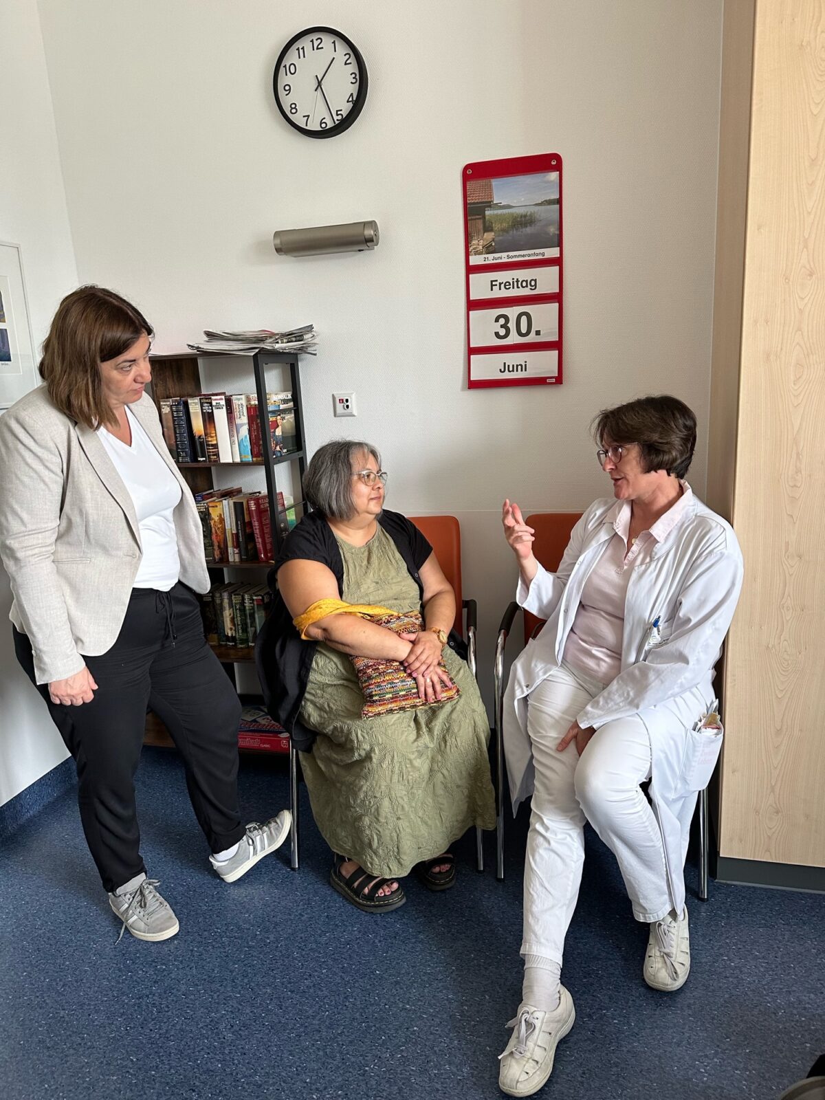 Im Gespräch wurde sehr anschaulich berichtet wie wertvoll hier der interdisziplinäre Ansatz dieser Abteilung für alle Beteiligten hat. Der Mensch steht eindeutig im Mittelpunkt; das berichtete fröhlich die Runde der Patient*innen im Aufenthaltsraum, die am Liebsten hierbleiben wollten, sowie die Mitarbeiter*innen der Station.